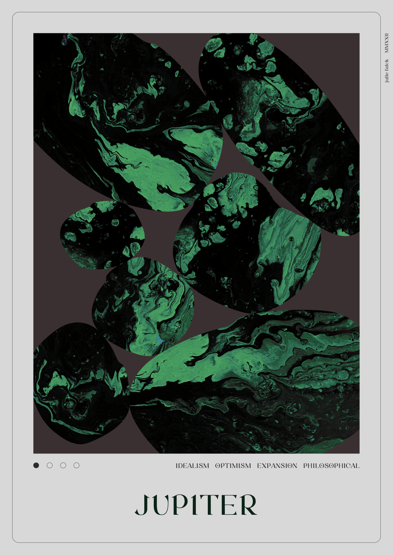 Poster series inspired by the astrologicalsignificance of the planets. 30x40 and 50x70 cm.